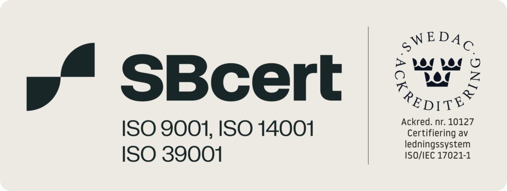 ISO-certifierade enligt ISO 9001, 14001 och 39001.